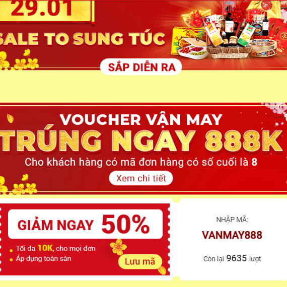 Săn sale hot chợ Tết cùng Lazada-Sendo-Shopee ngay thôi-nhiều voucher giảm giá đến 50% đấy bạn nhé